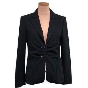 Piazza Sempione Blazer Size IT 44 US 8 Black Virgin Wool Ruched Front