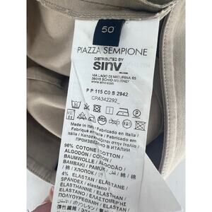 Expertly crafted in Italy, these Piazza Sempione “Brigitte” trousers offer a polished, timeless silhouette in a neutral beige hue. Designed from a cotton-elastane blend with a bit of stretch for ease and comfort, they feature a sleek flat front, clean lines, and cropped ankle hems with subtle slits at the back. Faux front slit pockets and a concealed zip closure contribute to the minimalist design. These slim-leg trousers are perfect for elevating everyday outfits and pairing seamlessly with structured blazers, crisp shirts, or flowing blouses. Sophisticated, flattering, and endlessly wearable.