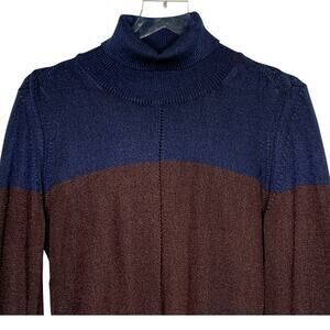 Piazza Sempione L Womens Colorblock Knit Turtleneck Sweater Navy Brown