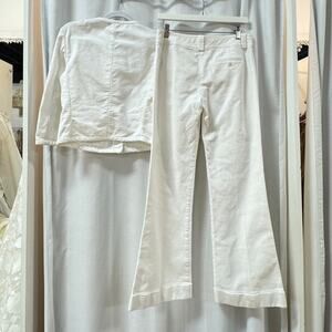 Piazza Sempione Long Sleeve Crop Jacket & Flare Pants Set White Women's Size 44