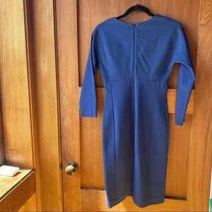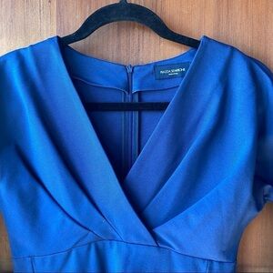 Gorgeous, high-quality, designer dress. Long sleeve. Hidden zipper down center of back. Pleated V-neck neckline.