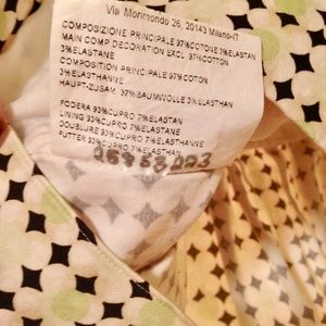 Classy and chic peplum blouse in a geometric print. 97% cotton and 3% elasthane; Italian size 42 (size Medium / 6). Excellent preowned condition.