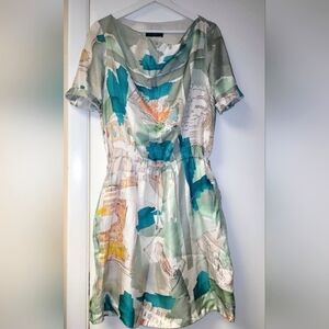 Piazza Sempione Silk Watercolor Italian Monuments Print Drawstring Dress Size S
