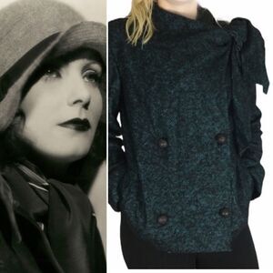 Piazza Sempione Teal Tweed Neck Tie Cropped Wool Jacket Italy 40
