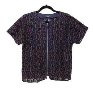 Piazza Sempione Top Wool Blend Zip Up Womens Size 46 Sheer Blouse Made In Italy