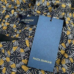 Piazza Sempione silk shift dress pattern print gold tribal black new 40 4