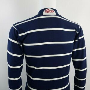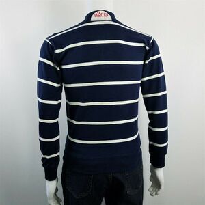 Double Placket , Stand Up Collar. Navy Blue , White Striped .