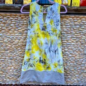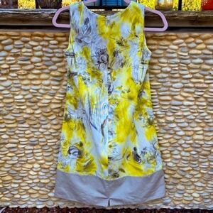 Piazza Sempione Yellow & Gray Sketched Print Shift Dress. Size 4 (38) EUC!
