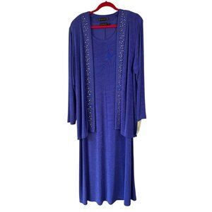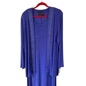 Picadilly Maxi Tank Dress Jacket Set L XL Purple Studded Stretch Acetate NEW