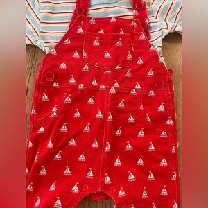 Picapino Sailboat Nautica Striped Red Blue 3-6 months Coverall Overall Romper