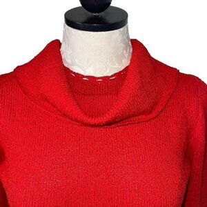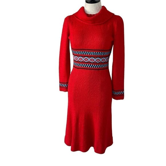 Picardo Knits Vintage Sweater Dress Size Small Red Knit Fitted Midi Cowl Neck