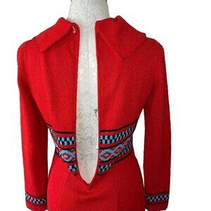 Picardo Knits Vintage Womens Knit Fitted Midi Dress Size Small Red Blue Black