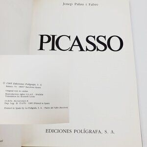 Picasso - Josep Palau I Fabre via Ediciones Poligrafa S.A. vintage 1985 hardcover art book, ISBN 843430421X. Book is unread with a tight spine, and some vintage paper wear/coloring. Ships safely in a secure box :)