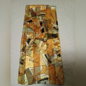 Picasso Abstract Geometric Art Scarf Designer Gold and Black Neck Wrap,gently used no flaws no tags.