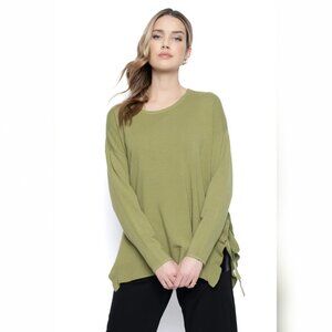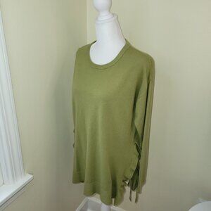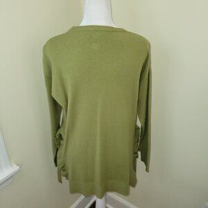 Piccadilly Side Tie Rib Knit 3/4 Sleeve Sweater Top Fern Green Women's Size S