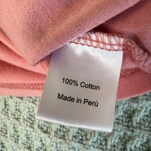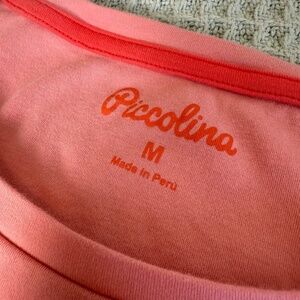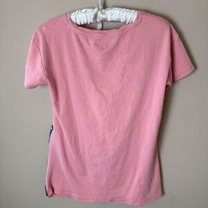 Piccolina women’s t-shirt. Size medium. Pink with Amelia Earhart graphic on the front. Shows minor wash wear.