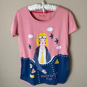 Piccolina Amelia Earhart Tee T Shirt Womens Medium Pink STEM Top Aviation Pilot