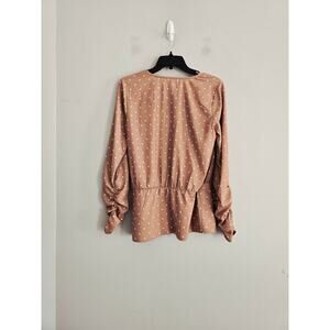 Paolaaiberdi The Drop Tan Polka Dot Top XS. Beautiful Tan with White Polka Dots all over, long sleeve, runched sleeves