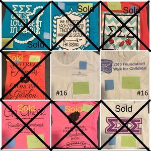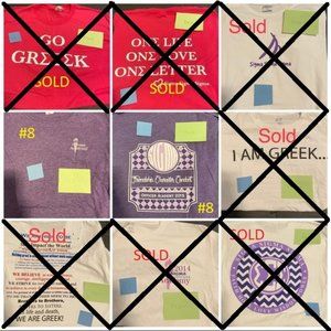 How about the 2 red ones, tri sigma empowered, and the one with the purple circle with the words around it? $22?