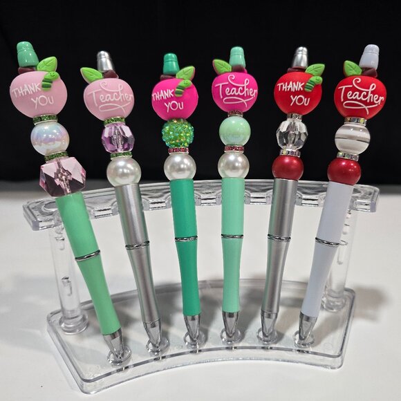 Pick-a-Pretty Pen for Teachers by PenGwensPosh - Black Ink - One side of the apple says: Teacher and the other side says: Thank you