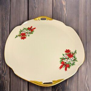 Pickard China Hand Decorated Poinsettia Plate Platter Porcelain USA Holiday VTG