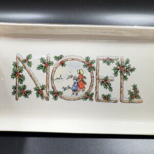 Pickard China Ivory Hand Decorated NOEL Tray USA Porcelain Ceramic Holiday VTG