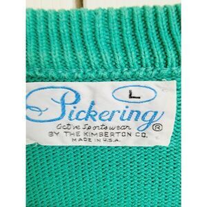 Elevate your style with this vintage Pickering Men's Sweater from the 80s. Perfect for any occasion, this sweater features a solid pattern and a tight-knit fabric type for a classic and retro style. The V-neckline and long sleeves provide a comfortable and stylish fit, while the green color and golf course character add a touch of fun and outdoor vibes.