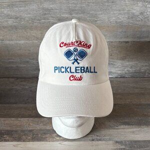 Pickleball Court King Embroidered White Adjustable Cap Hat