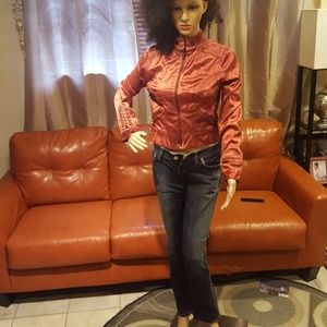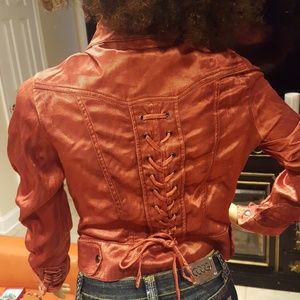 @lovespitbulls when the sun is shining on it it looks dark orange and when its not it dark red.....firecrack red....very nice