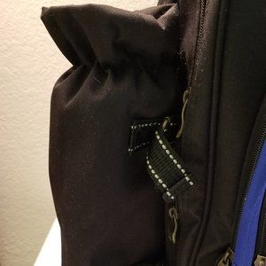 Black/blue backpack with detachable insulated wine holder