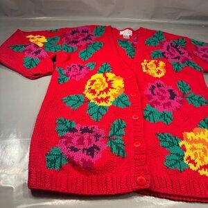 Picone Sport Knitted Hand Cardigan Women Floral Oversized Vintage Long Sleeve