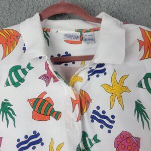 Picone Sport Polo Shirt Womens Large Tropical Fish Colorful 100% Cotton Collared