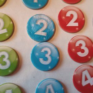 See photos for all defects- one card torn and some number cards are rough, missing one number circle(1 orange) otherwise has all pieces and instructions