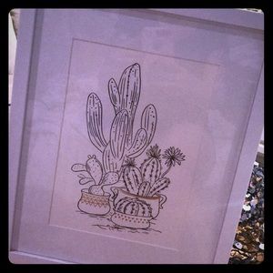 Framed glass picture. Cactuses with gold accents.