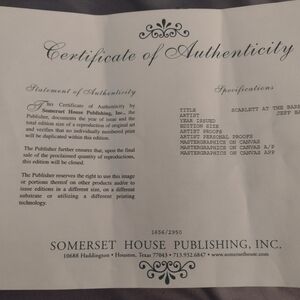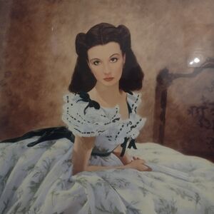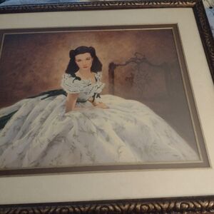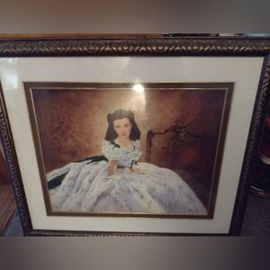 Scarlett O'Hara at the barbecue it is 30 in high 36 wide and that does not include the inches with the frame it has auction number on the back and certification. she is in her white and green dress