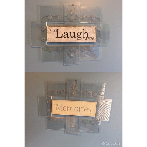 Two 8 picture, picture frame. Comes with 2 middle phrases "Memories" & "Live, Laugh, Love" (if phrases are removed, fit additional 2 pictures per frame set)