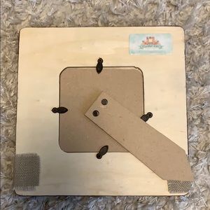 New Wood picture frame with raffia details. Ribbon reads “great sisters get promoted to auntie”