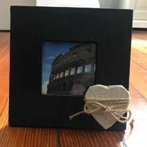 Black frame with heart and twine bow.