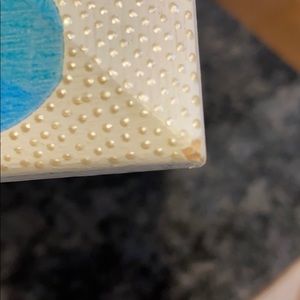 Polka Dotted Picture Frame. 71/2 x 9 1/2. Matte can be used for a 3 x 4 1/2 photo or use up to a 41/2 x 61/2 photo. Hand painted polka dots.