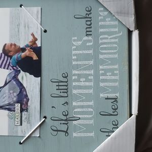 Brand new picture frame still in box never used, smoke free home. 4×6 picture fits. Also has saying "Lifes little moments make the best memories"