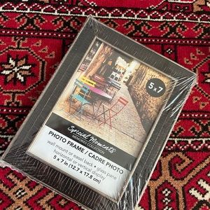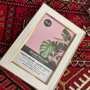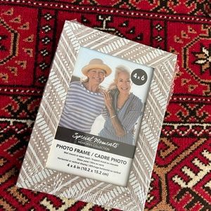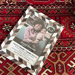 Dainty and elegant picture frame set. Still packaged. Neutral colors will go great in any room. 5 frames. 1 small photo album. 4x4 (1), 4x6 (2), 5x7 (2).