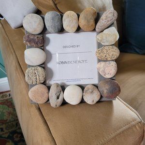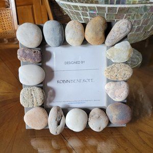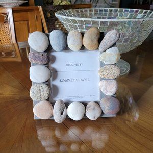 This gray wood picture frame is unique & handmade & designed with cool rocks in assorted colors. All found from Long Island, New York Beaches!