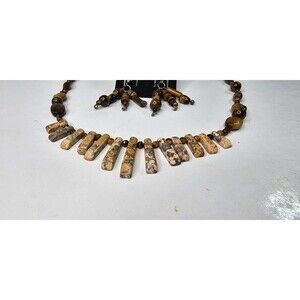 Picture Jasper Fringe with Tiger's Eye Beaded Necklace & Earring Set Handmade