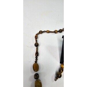 GORGEOUS! Tiger's eye beaded necklace features picture jasper pieces that create a fringe style necklace.