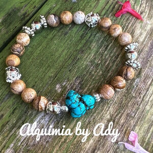 Picture Jasper chunky turquoise beaded bracelet/healing crystal for Leo