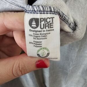 This Picture Organic Clothing full zip hoodie is perfect for nature and outdoor enthusiasts. The lightweight hoodie features a hood, full zip, and pockets for added convenience. The navy blue color and mountain print give it a stylish look, making it suitable for everyday wear.