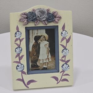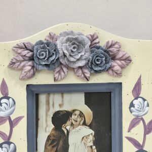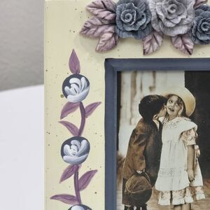 Picture Photo Frame Wooden Hand Painted Purple Lavender Roses 3D Art Easel