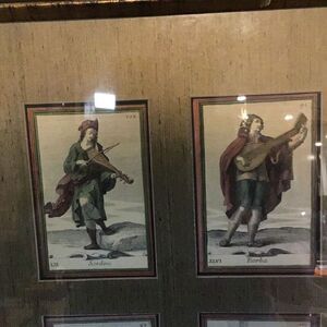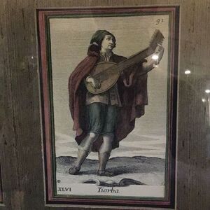 Picture, ensemble of musical prince, seemingly fabric, pages of a book matted and frame beautifully