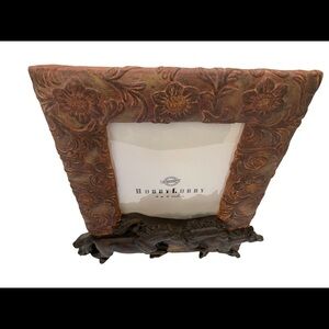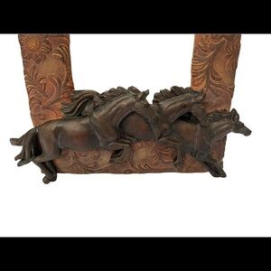 Picture frame 4x6 resin texture floral med brown 3 horses across bottom dark brn