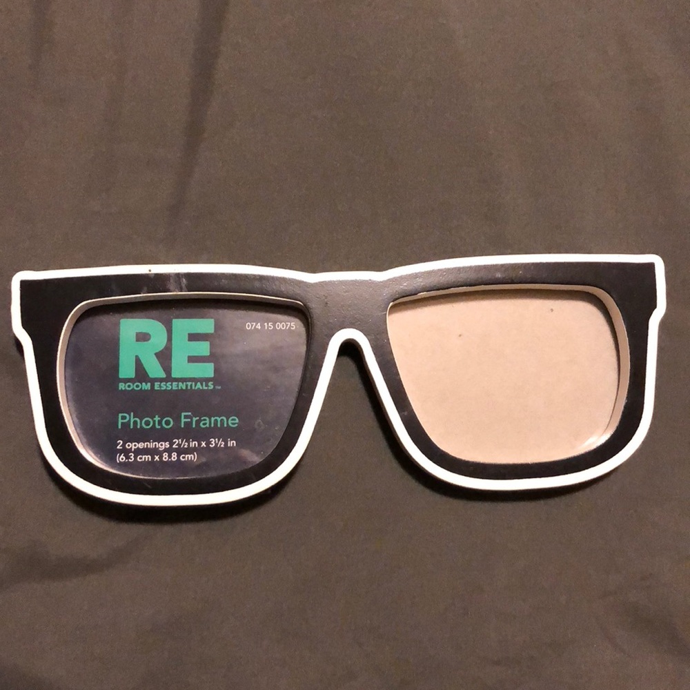 2 1/2 in x 3 1/2 in frames. Sunglasses shape picture frame with kick stand on back